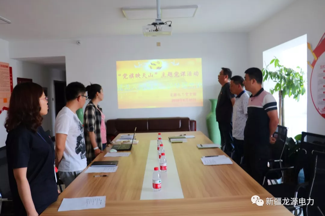 為紀(jì)念建黨97周年,教育引導(dǎo)支部黨員深入學(xué)習(xí)貫徹習(xí)近平新時(shí)代中國(guó)特色社會(huì)主義思想,在實(shí)現(xiàn)社會(huì)穩(wěn)定和長(zhǎng)治久安總目標(biāo)的奮斗中充分發(fā)揮先鋒模范作用,新疆龍?jiān)措娏こ逃邢薰军h支部于6月30日召開(kāi)了“黨旗映天山”主題黨日活動(dòng)。