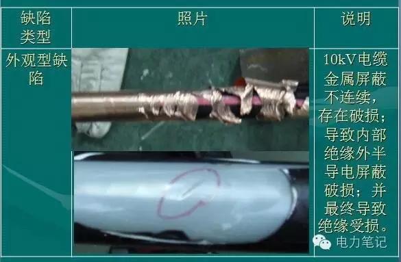 在電纜接頭安裝過程中要剝除外半導電屏蔽,如果在關鍵部位造成損傷,例如刀痕,也會形成內部爬閃放電通道。