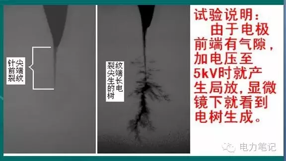 試驗:針板電極試驗、氣隙更易產生電樹