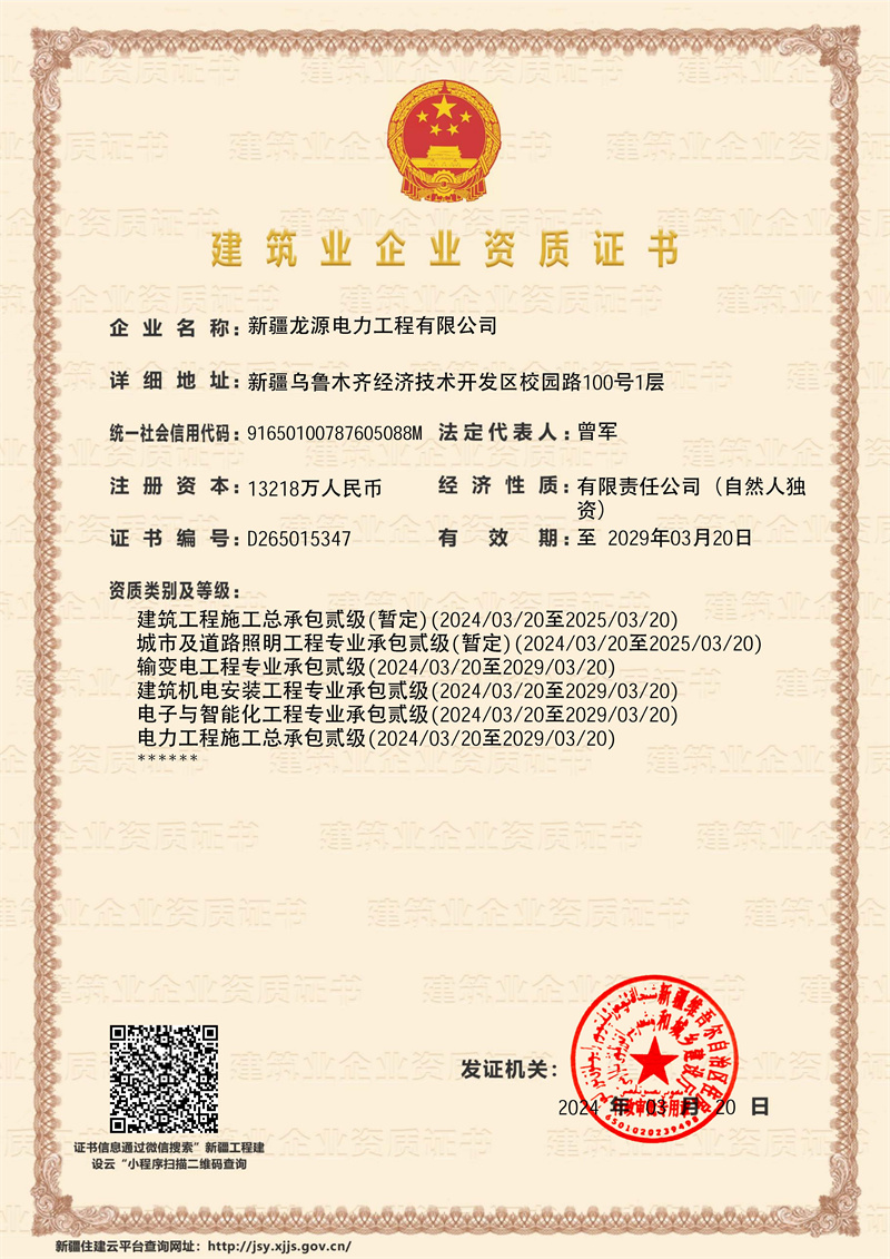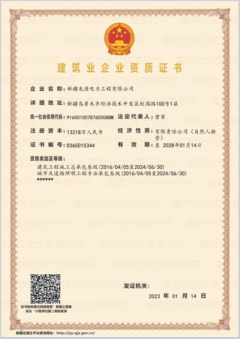 建筑業(yè)企業(yè)資質(zhì)貳級(jí)證書